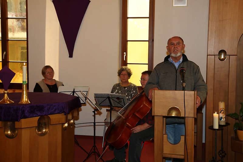 Musikalische Darbietungen durch eine Flötengruppe und Solisten mit der Querflöte, der Blockflöte und der Orgel ließen Raum zur Stille und zur Überlegung. Folienbilder ermöglichten es, die Gedanken auch optisch zu vertiefen.