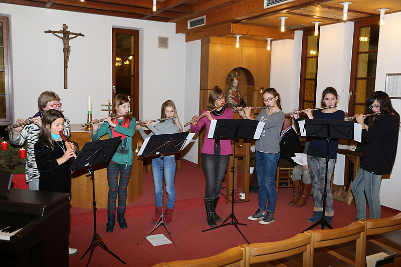 Musikalisch wurde dieses vorweihnachtliche Angebot durch Gittarenvortrag, Orgelspiel, durch Violin- und Cellospielerinnen und einer Instrumentalgruppe mitgestaltet.