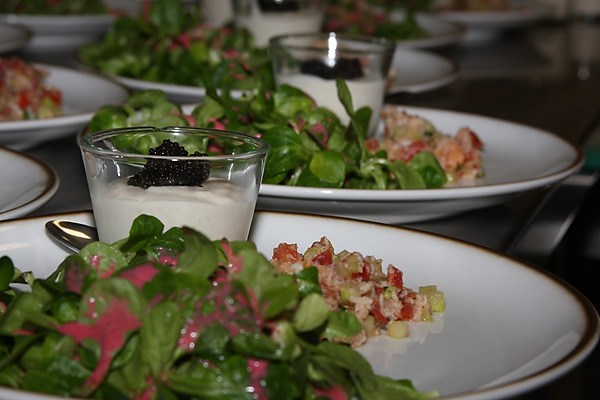 Am Nachmittag ging es dann los mit Feldsalat putzen, Kartoffeln kochen, Fleisch braten und noch vieles mehr was in einer Küche so anfällt. Aufgeteilt in die klassischen französischen Küchenposten gingen die Teams ihre Aufgaben an und bereiteten so Stück für Stück das gemeinsame Essen vor. Nach gut 4 Stunden konzentrierter, spannender und lustiger Arbeit war das gröbste geschafft. Davon zeugte nicht nur der Berg an dreckigem Geschirr in der Spüle.