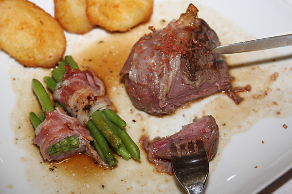 Der gesellige Abend begann mit einem Sektempfang, bei dem Michael Derleth die Gäste sowie die Mitköche begrüßte und im Namen der Pfarrjugend für das große Engagement des Pfarrteams für die Pfarrei und die Pfarreiengemeinschaft dankte. Nach dem Anstoßen platzierten sich die Kostgänger und das Festmenü begann mit Hummermedaillons und gegrillten Jakobsmuscheln mit Papaya-Chilirelish. Im zweiten Gang folgte eine scharf-süßliche Kokossuppe mit Poularden-Sate. Etwas "leiser" im Geschmack und vorbereitend auf den Hauptgang kam eine Seezungenroulade mit Safranschaum und Basmatireis. Im Hauptgang kredenzte man ein saftiges Rinderfilet im Speckmantel mit Barolojus, Bohnenbündchen und Kartoffelkrapfen. Den zarten Abschluss bildete eine Mousse und ein Segel von der Valrhona-Schokolade mit Kiwi-Ananas-Couli. In geselliger Runde wurde noch bis lange in die Nacht geplaudert und gelacht.