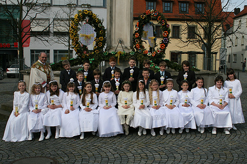 Haßfurt. Am Sonntag, 30. März freute sich Stadtpfarrer P. Reinhold Schmitt 11 Jungen und 14 Mädchen zur Ersten Hl. Kommunion in der Stadtpfarrkirche St. Kilian führen zu dürfen.