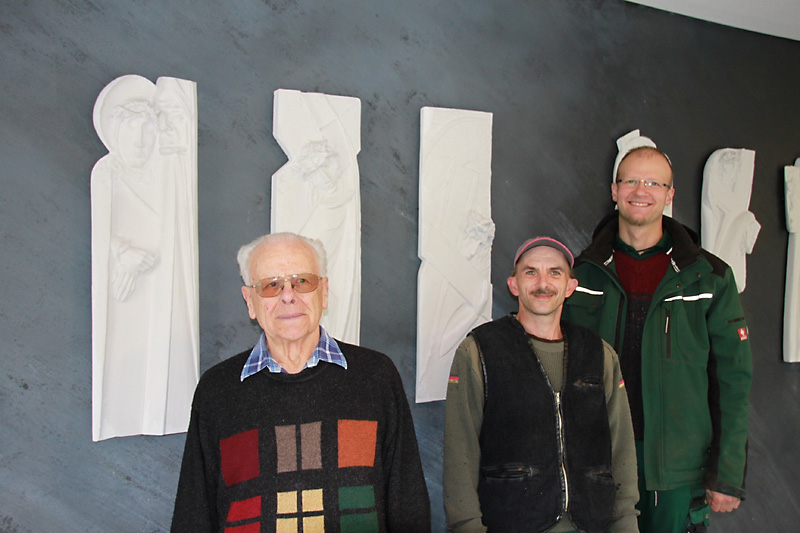2008 hatte das Salesianum nach 62 Jahren als Schülerheim der Salesianer-patres geschlossen. 2012 hatte Marco Strätz, Geschäftsführer der Projektentwicklungs-GmbH Green Trust aus Stettfeld das leerstehende Internat erworben. 24 moderne Eigentumswohnungen sollen hier entstehen, teilweise sind sie bereits verkauft. Der Umbau steht unmittelbar bevor. Schon beim Auszug der Salesianer hatte Rudi Eck noch als Bürgermeister zugesagt, dass sich die Stadt um einen neuen Standort für die Kunstwerke von Heinrich Thein kümmern wird. Der neue Investor hat dankenswerter Weise die einzigartige Ausstattung der Hauskapelle auch der Stadt zur Verfügung gestellt. Also musste gehandelt werden. Mittlerweile haben die Relieftafeln (25x80 cm) des Kreuzwegs eine würdige Bleibe im vor kurzem erweiterten Eingangsbereich der Friedhofskapelle am Rödersgraben gefunden.