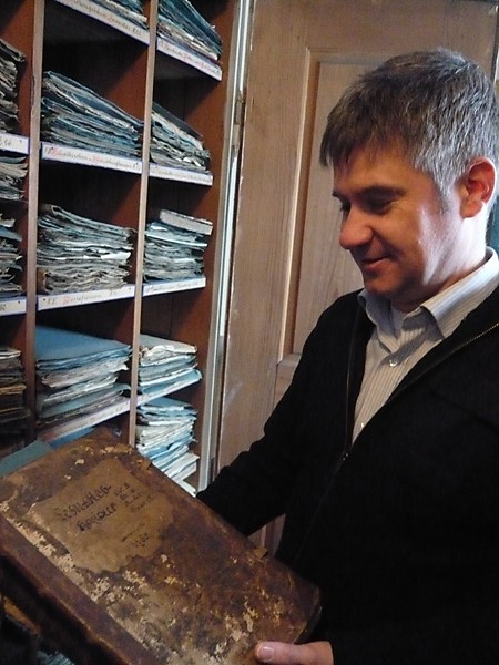 Haßfurt. Ein „Zinnß= Gült= Lehen Register renovirt 1765“ hält der Haßfurter Stadtpfarrer Stephan Eschenbacher in Händen. In deutscher Handschrift verfasst, beschreibt es Einnahmequellen für die Pfarrei. Im Zuge der bevorstehenden Pfarrhausrenovierung in der Kreisstadt werden nunmehr alle historischen Unterlagen der Pfarrgemeinde neu geordnet und konservatorisch sowie fachgerecht für die Zukunft aufbereitet. Dies betrifft alle vorhandenen Unterlagen und Dokumente seit Gründung der Pfarrei St. Kilian. Sie werden in einem längerem Arbeitsprozeß von jeglichem Metall befreit, gesäubert und fachgerecht verpackt. Ein Findbuch wird angelegt. Dazu gab Matthias Finster von der Projektstelle Schriftverwaltung des Bistums in Pfarreiengemeinschaften den Helfern entsprechende sachliche Hinweise und Informationen, um das Pfarrarchiv geordnet und gut verwahrt aufzubauen.