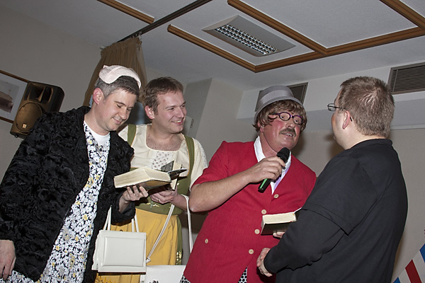 Eine Uraufführung hatte der neue „Pfarri“ (Benedikt Wolf) der den Besuchern und Interessierten der Pfarrei mit Rat und Tat zur Hilfe steht. Dies konnten Mirjam und Markus Wolf sowie Siggi Lohs in den unterschiedlichsten Anfragen hautnah erleben.. Gelungen wieder der flotte Tanz der Häschengarde und anschließend sorgte eine lustige Gruppe vom Frauenbund mit dem Stück „Aschenputtel“ für einen tollen Auftritt. Die Mimik, das geniale Outfit und die unterschiedlichen Rollen kamen bestens an.