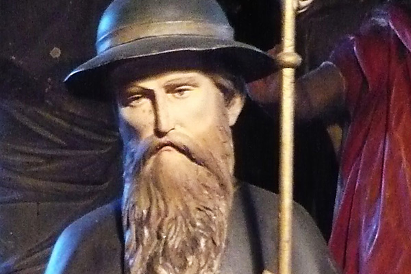 Nach der Legende ist St. Rochus um 1295 in Montpellier (Frankreich) geboren. Sein Vermögen gab er den Armen, pilgerte nach Rom und pflegte mit Hingabe Pestkranke. Auf dem Heimweg war er selbst an Pest erkrankt – und wurde geheilt. Ein Engel sorgte sich um ihn, der Hund eines Jägers brachte ihm Brot. In seine Heimatstadt zurückgekehrt, hielt man ihn für einen Spion (von der Pest entstellt) und warf ihn ins Gefängnis. An einem Muttermal erkannte man ihn und bestattete ihn ehrenvoll.
