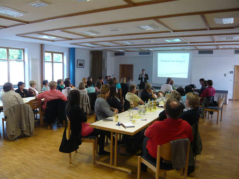 Haßfurt. Am 25.06. kam es im Pfarrsaal in Haßfurt zu einem Treffen aller Pfarrgemeinderäte der Pfarreiengemeinschaft. Dabei nahmen die neugewählten Gremiumsmitglieder die nächsten vier Jahre ihrer Amtszeit in den Blick. Mit einer Präsentation warb Pfarrer Eschenbacher dafür, ein Hauptaugenmerk auf das Thema "Pastoral von morgen" zu legen. In einem ersten Schritt (Sehen) sollten die Pfarrgemeinderäte eine Gemeindeanalyse ihrer Pfarrei und der pastoralen Arbeit vor Ort erstellen. Ein zweiten Schritt (Urteilen) lädt dazu ein, die derzeitige Pastoral vor Ort unter verschiedenen Blickwinkeln zu betrachten und zu überdenken. Schließlich sollen dann in einem dritten Schritt (Handeln) konkrete pastorale Handlungsschritte erarbeitet werden, die mit der Pfarreiengemeinschaftsebene vernetzt werden müssen. Am Ende dankte Pfarrer Eschenbacher allen Pfarrgemeinderäten für ihre wichtige Arbeit in der Pfarrei und wünschte Ihnen in Ihren Sitzungen ein gutes Gelingen.
