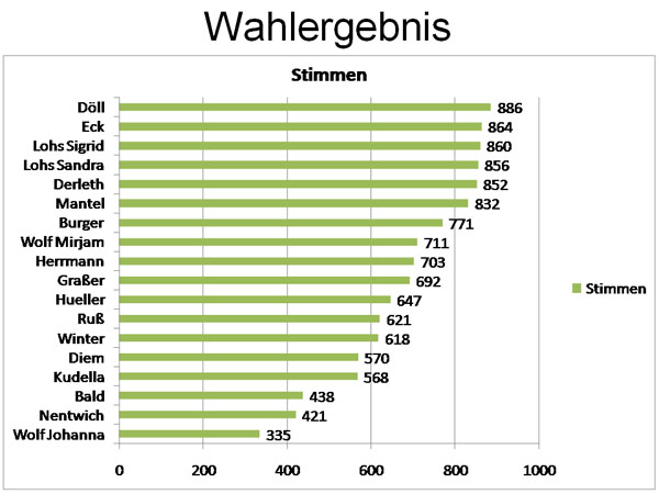 Die Wahlbeteiligung lag bei 28,29%. In den Pfarrgemeinderat St. Kilian Haßfurt wurden gewählt: