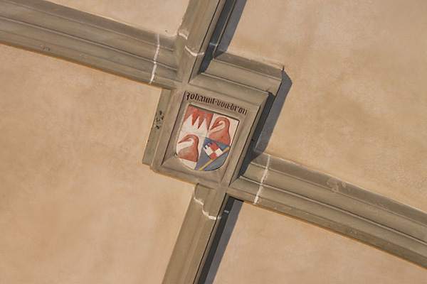 Gewölberippen und Schlussstein mit dem Wappen des Würzburger Fürstbischofs