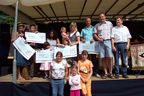 Haßfurt. Auch in diesem Jahr wurde der Reinerlös der Büttensitzungen der "Elf-Weisen-Hasen" beim Pfarrfest der Pfarrei St. Kilian Hassfurt übergeben. über jeweils einen Scheck von 1.000,-- freuten sich die Abordnungen des Elternbeirates der Kindergärten St. Barbara u. St. Josef, des evangelischen Kindergartens sowie des Kindergartens Sylbach. Für die Pfarrei St. Kilian übernahm Kaplan Hutzler die Spende. Mit der Spendenübergabe beginnt bei den "Hasen" auch wieder die Vorbereitung auf die neue Saison, damit auch 2008 ein anspruchsvolles Programm geboten werden kann.