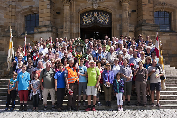 Unterhohenried. Das Foto vor dem Portal der Basilika Balthasar Neumanns kann die vielen Pilgerinnen und Pilger kaum fassen. Das Phänomen und das tiefe Erlebnis einer Wallfahrt schlug auch in diesem Jahr bei der Vierzehnheilgenwallfahrt in der Pfarrgemeinde Unterhohenried voll durch.